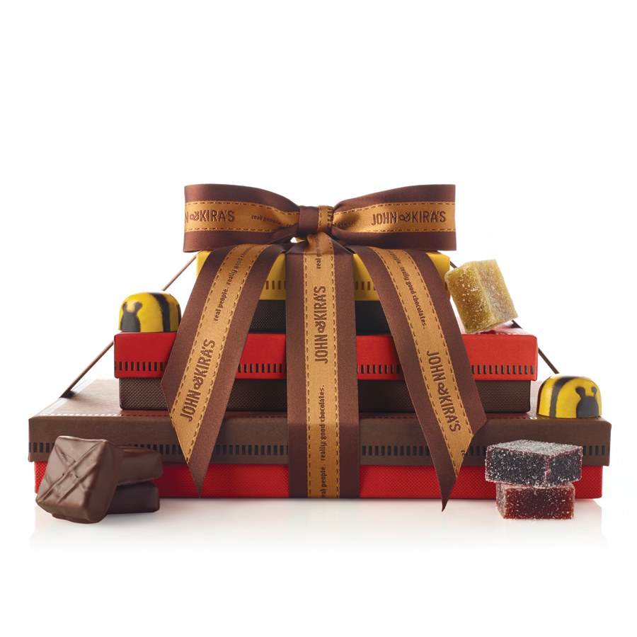 SHELF LIFE — Items containing ganache are best enjoyed within 10 days when stored at room temperature, or may be stored for up to 5 weeks in the refrigerator. Our Fruit Squares are sensitive to changes in humidity and temperature. To ensure their quality, they are best stored wrapped in plastic and refrigerated, and can last for up to 3 months.