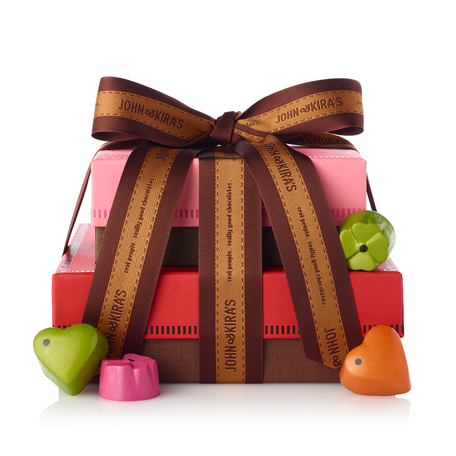 In this gift assortment, this new 9pc trio is featured atop our classic 9pc Chocolate Sweethearts, featuring an assortment of 9 different flavors.